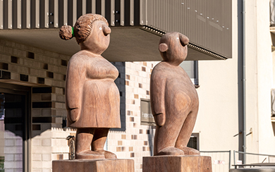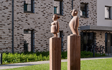 „Ich habe auch schon für andere Wohnungsunternehmen und öffentliche Auftraggeber Figurengruppen geschaffen und aufgestellt“, sagt Jonas Kötz. Viele Jahre illustrierte der ausgebildete Kommunikationsdesigner Kinderbücher für namhafte Verlage, bevor er sich aufmachte, seinen gezeichneten Figuren ein dreidimensionales Leben zu verleihen.